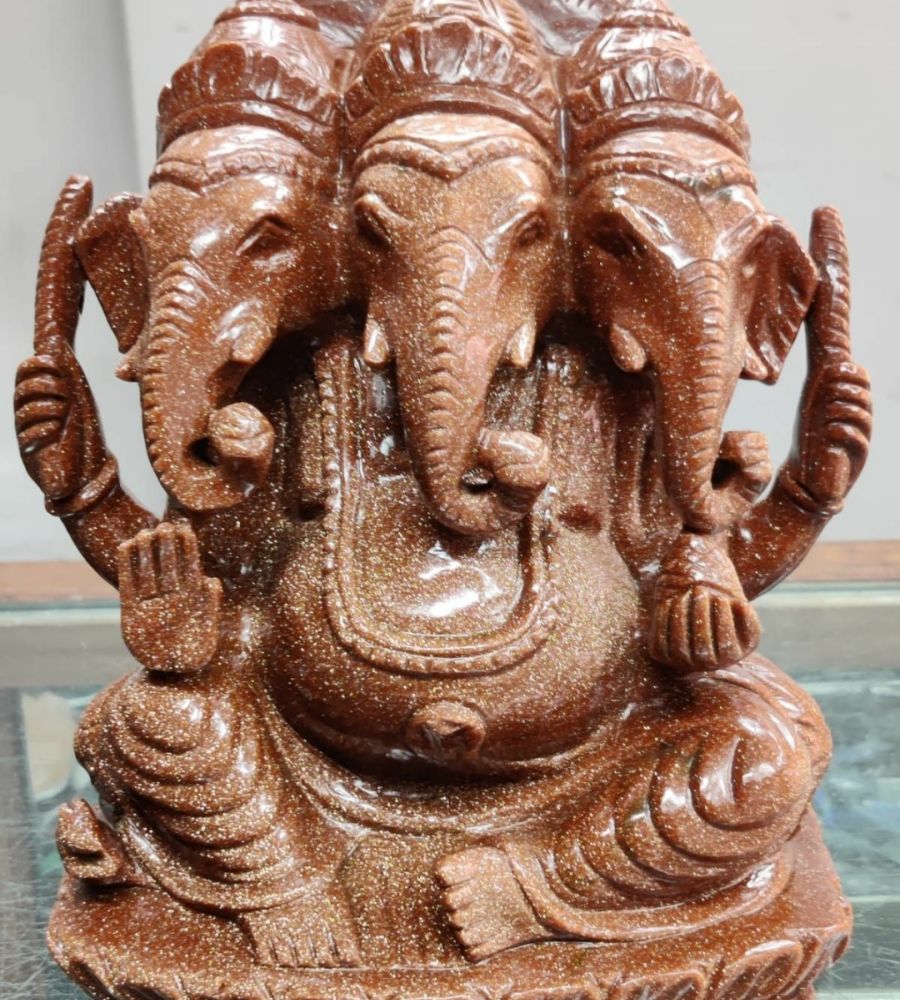 3 face ganesh idol sandstone ganesh idol 8.5 inches
