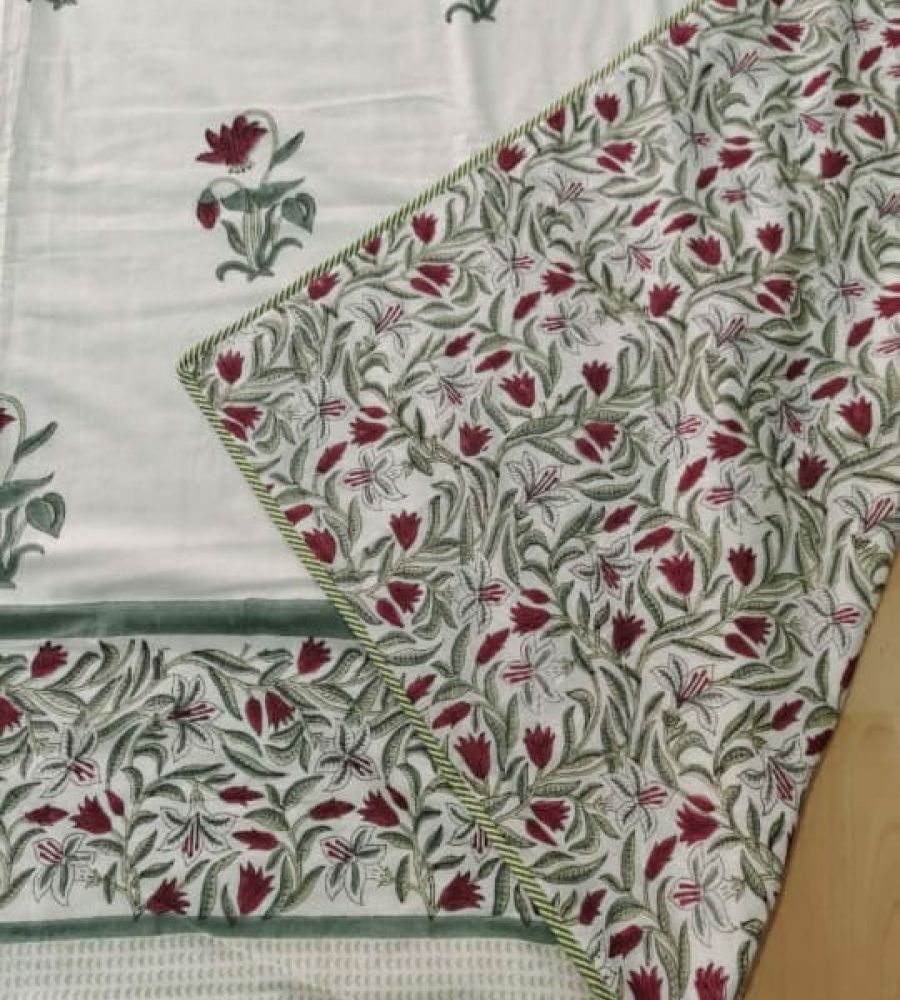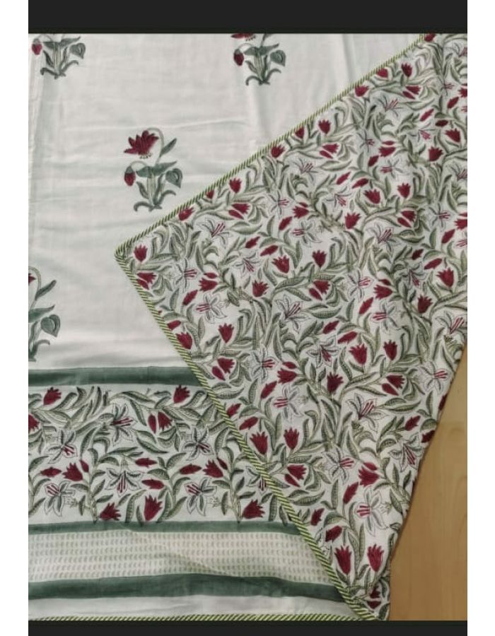 Material - super fine cotton organic colour and organic thread used handblock print fast colour double side different print falalen quilted. Skin friendly