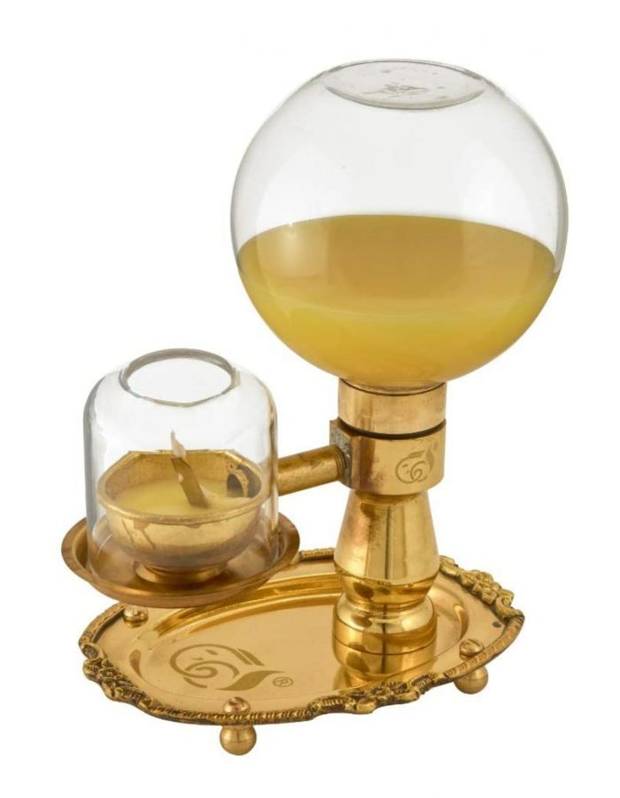 Akhand brass glass Deepak akhand diya with glass storage 24 hour burning capacity