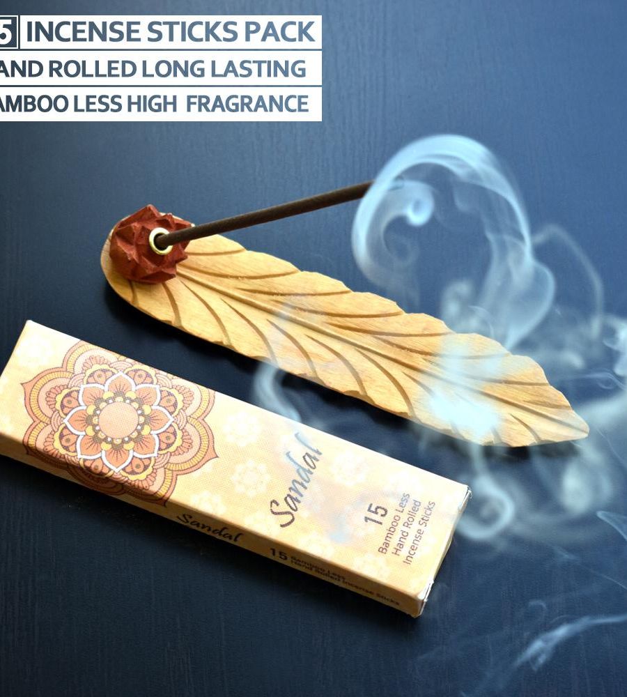 Wooden leaf incense holder with 50 Bamboo less sticks