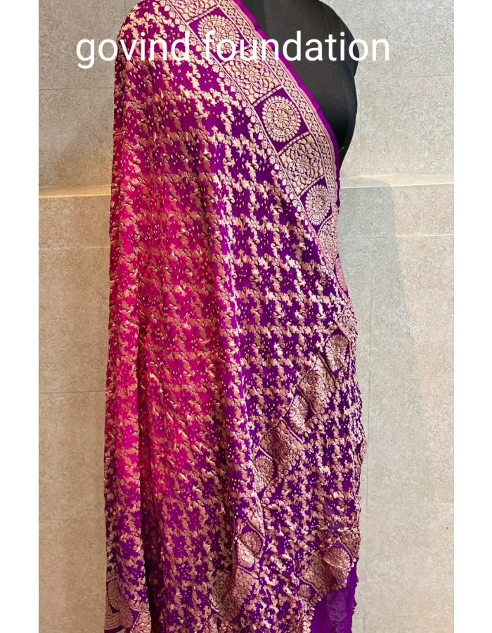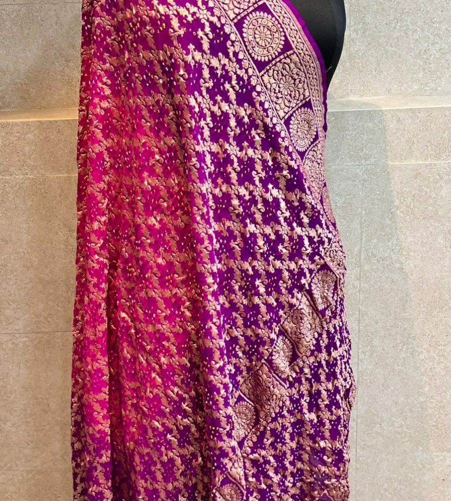 Beautiful shade Banarasi bandhni dupatta perfect for party suit , matching salwar suit, lehanga And dressesThis product has been woven by hand and may have slight irregularities that are a natural outcome of the human involvement in the process is a highly skilled technique where the fabric is elaborately tied & dipped in dyes to reveal a dotted design with bright patterns.Each item is handcrafted using the bandhani tie-dye technique, using 100% natural dye, and might carry variations of color (light and dark), patterns and other delicate inefficiencies.