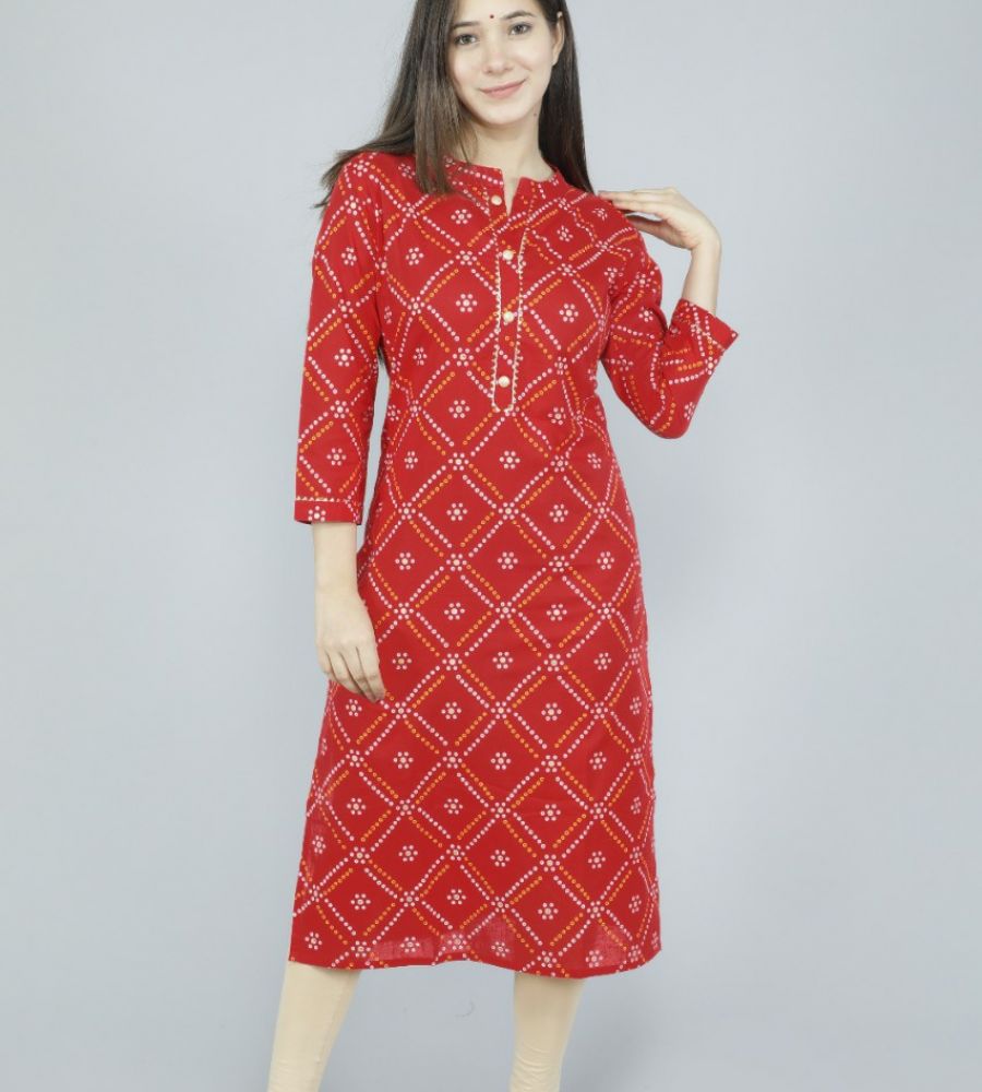 Bandhe kurti bande cotton kurti red