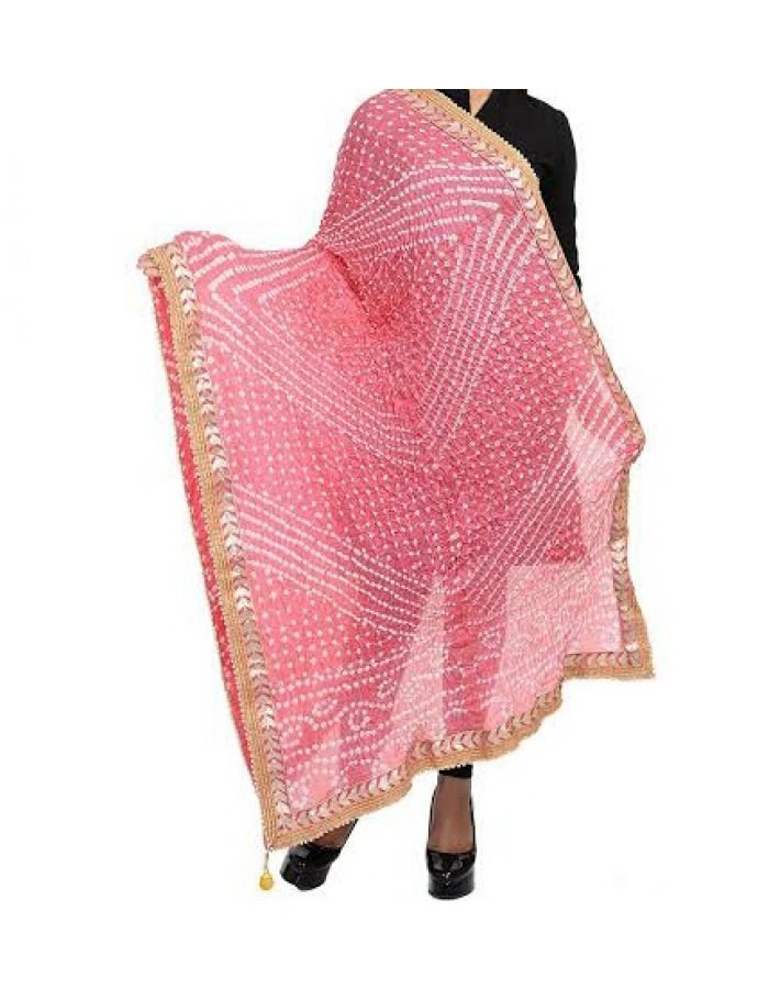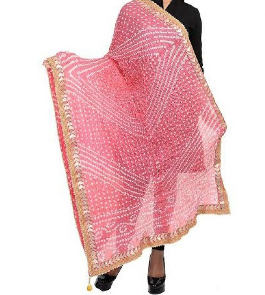 This silk peach colour bandhej dupatta has been woven by hand and may have slight irregularities that are a natural outcome of the human involvement in the process is a highly skilled technique where the fabric is elaborately tied & dipped in dyes to reveal a dotted design with bright patterns.Each item is handcrafted using the bandhani tie-dye technique, using 100% natural dye, and might carry variations of color (light and dark), .