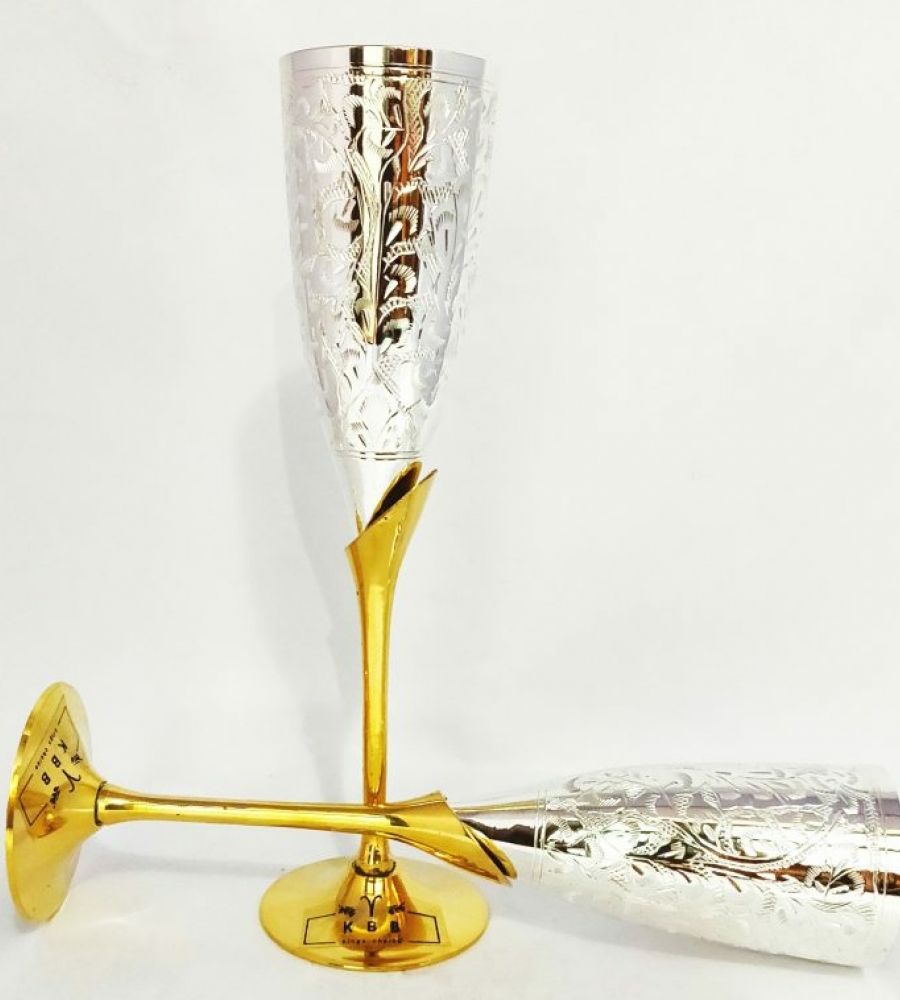 Beautiful Brass glass with silver design Australia design glass set of 2
