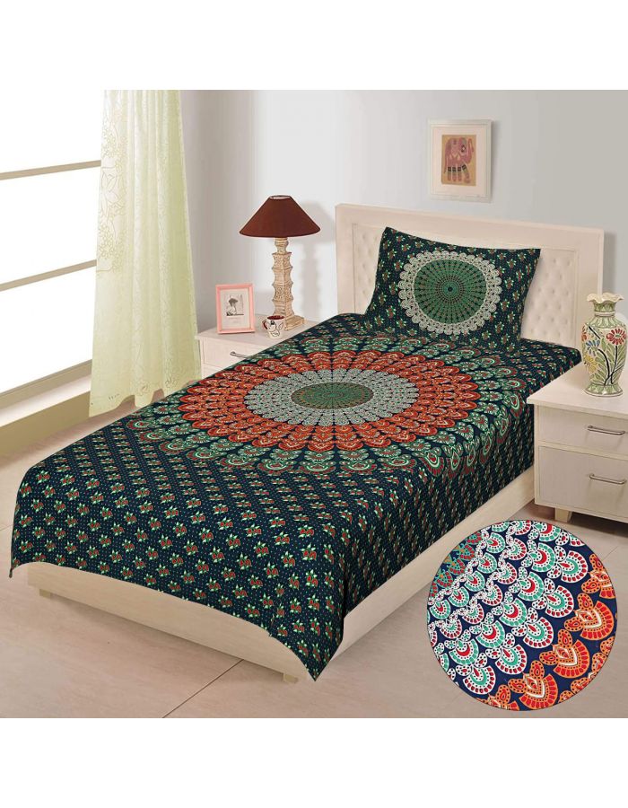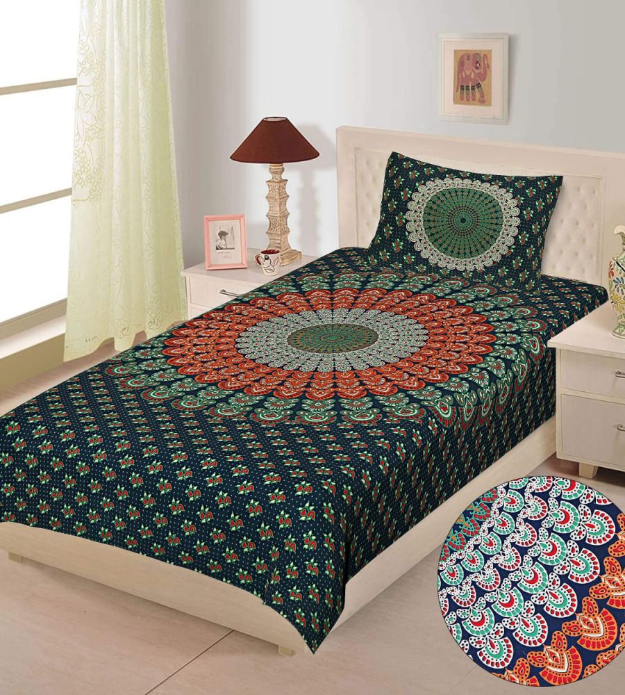 Dress your bed in style with the versatile and attractive range of single bedsheets from rajasthanikart. The Jaipur-printed bed sheets feature traditional-themed floral patterns in lively hues. Also, the 100 percent cotton fabric ensures skin-friendliness, easy wash ability and color-fastness. The world has known fewer other pleasures to match the pampering comfort of a welcoming bed at home. A fine fusion of both comfort and design- this vibrant and ethnic range of bed sheets is all you need for a restful sleep this summer. Wash care machine/hand wash with mild detergents. Do not bleach and wash separately for the first time.