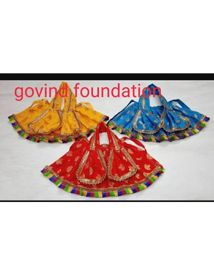 The dress is for Jagannath, Baldeva and Subhadra deities. This dress is made up of soft silk cloth which beautiful golden lace/ border. This is very sober and beautiful dress.