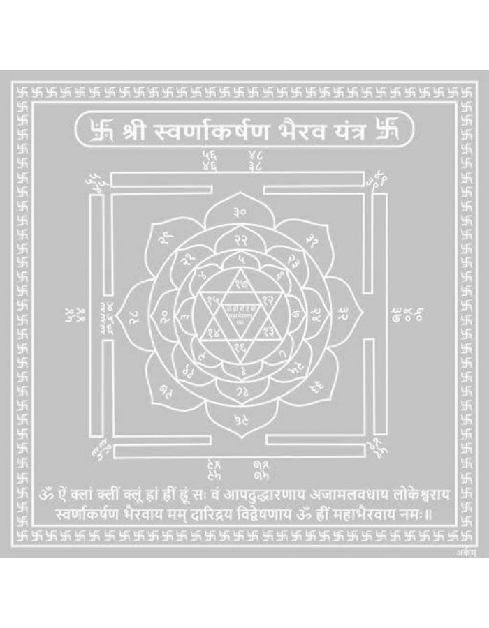 Lord Bhairav is an incarnation of ‘Lord Shiva’. Worship of Lord Bhairav is very useful to win over your enemies, to achieve success and all materialistic comforts. Bhairav Yantra eliminates the effects of black magic, fear of ghosts, evil spirits and other negative influences This yantra is basically beneficial in removing and eliminating the ill effects of black magic, ghosts, and evil spirits. Shree Bhairav Yantra is also helpful in negating the malefic and ill effects of the planet 'Rahu'.success over enemies, diseases and debts. This Yantra also protects a worshipper during journeys especially while traveling at night and assures a safe and smooth journey protecting him from hidden enemies. clean water and dry it clean with a soft piece of cloth then install it with full dedication and devotion at your worshipping place. Light a lamp and ignite some incense sticks. Beej Mantraclean water and dry it clean with a soft piece of cloth then install it with full dedication and devotion at your worshipping place. Light a lamp and ignite some incense sticks. Beej Mantra -vang batuk bhairway namah