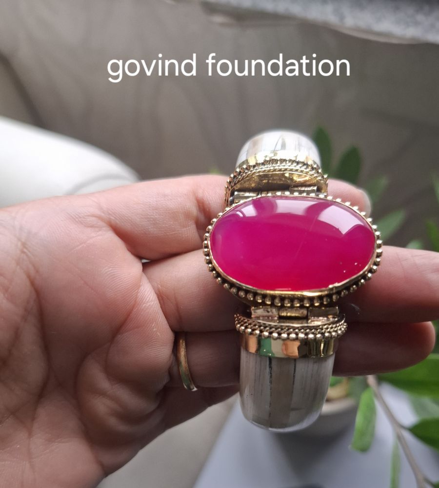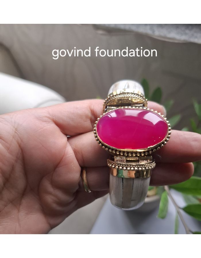 Ruby Pink Stone Bone Kada Bracelet