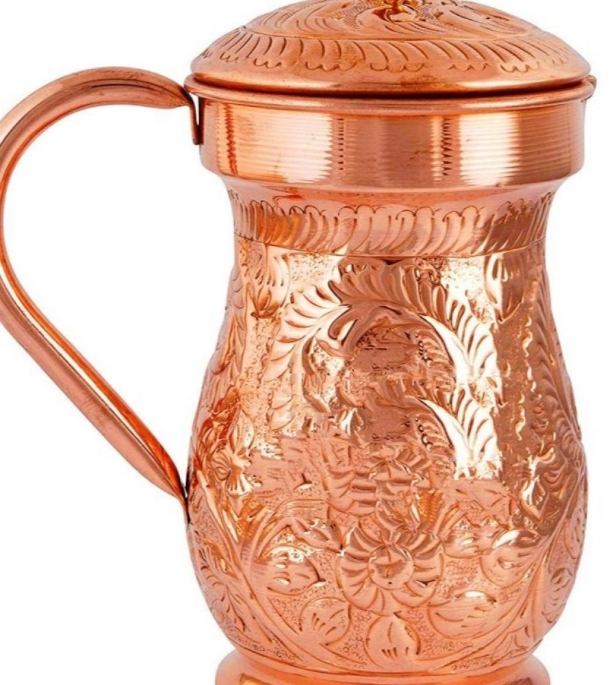 Copper jug Benefits, In Copper Vessels,store water in it overnight and drink it on empty stomach for numerous health and therapeutic benefits? Welcome to the world of copper bottles, the latest health rage and insights into why you should invest in copper bottles and the role of this important metal/trace mineral in our daily wellbeing.. Historians believe that the copper has been in use for over 11,000 years and it is often referred as copper age or chalcolithic In India, copper is the first choice in religious rituals for storing holy water and other purposes like cooking. Known as Tamiram in Tamil, Raagi in Telugu, Taamba in Hindi, Tamra in Kannada there is no exaggeration in saying that all Indian households would possess at least one copper vessel or a glass. Thanks to growing awareness on traditional methods of cooking and eating, copper bottomed utensils too made a comeback into our kitchens in the recent years. Interestingly, our bodies too possess a little amount of copper in the form of a trace mineral at around 1.4 to 2.1mg and the deficiency of copper can lead to various chronic conditions. Eating food in Copper plate The Role Of Copper In Cleansing Water: Our ancient medicine Ayurveda strongly recommends drinking water stored in copper vessels daily for boosting immune system and for balancing all the three doshas – vata, kapha and pitta. Ayurvedic practitioners refer water stored in copper vessels as ‘Tamra Jal’ and this copperized liquid serves as a natural oxidant. In addition, copper comes with significant amounts of antimicrobial properties making it ideal for eliminating disease causing bacteria, fungi and viruses. When water gets stored for up to 8 hours in a copper bottle or a vessel, it undergoes oligodynamic effect, which means it gains the ability to kill several infection causing microbes, fungi besides maintaining the natural PH levels. Based on studies that certain 355 copper alloys can kill 99.9% disease causing bacteria within just 2 hours of regular cleaning, the United States Environmental Protection Agency (EPA) approved the usage of copper coated door knobs, bedrails, handrails, sinks, faucets, toilet hardware, etc in hospitals to arrest and reduce the transfer of contagious diseases like cold, cough, influenza and contamination. Besides killing highly resistant bacteria, fungus and virus copper water is a treasure trove of medicinal properties that can play a pivotal role in maintaining the overall health.