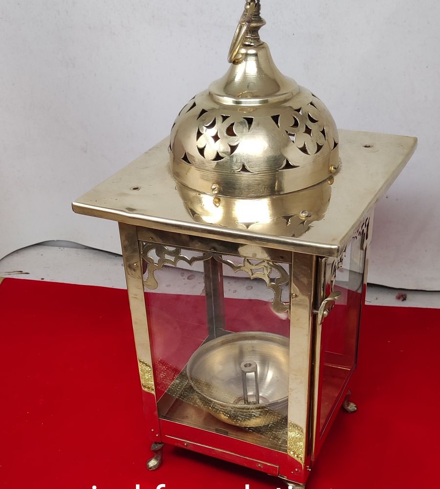 Jali cut design pure brass Lantern oil lamp for akhand jot