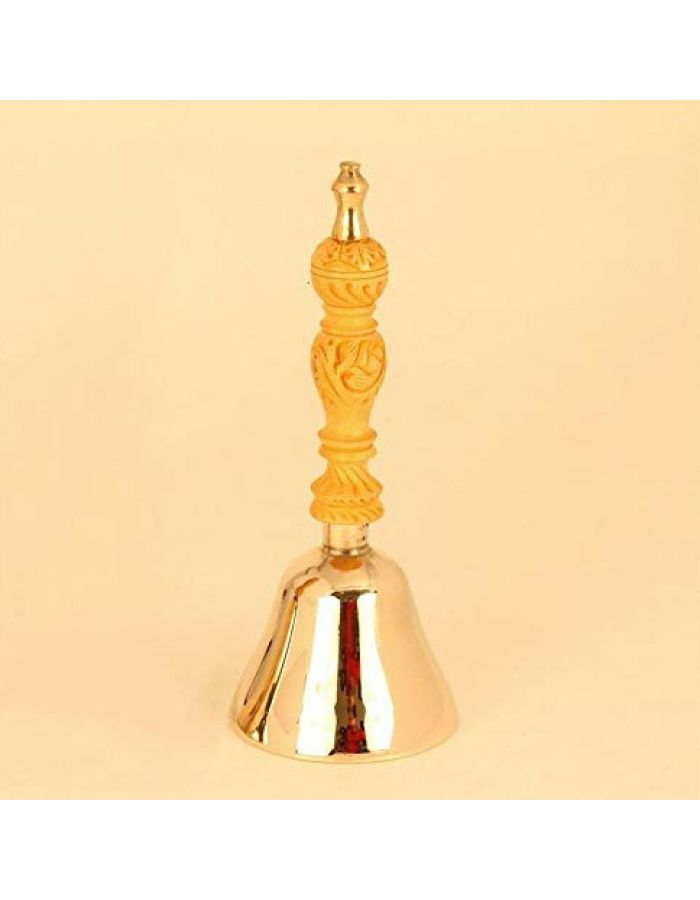 This is pure bronze Pooja bell with wooden handle bronze bell gives positive vibrations and and sound is very pure and auspicious and good for health