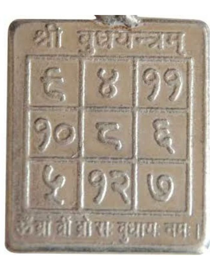 Budh Yantra pertains to planet Budh alias Mercury. You imbibe good positive qualities of Mercury Yantra. Siddh Budh Yantra works well to sharpen, intelligence and acquiring knowledge. You are able to take the right decision, set goals and achieve the same. It adds to your sense of creativity. You develop a good sense of humor and become kind of witty in conversation. Career oriented is to achieve higher growth and hold a very responsible position in a reputed organization. A business person succeeds is able to score over competitors and hold reputation in the market as a trustworthy business person. Siddh Budh Yantra leads to a healthy financial position and prosperity in life. Enhances communication skills, intelligence and creativity · Protects from all kinds of diseases and sorrows · Offers wit and presence of mind · Enhances ..This Budh Yantra is a sacred instrument that resonates with the powers & positive frequencies of planet Budh (Mercury). Mercury Yantra has the power to attract principles of God Budh and also carry the signification of a mantra. This yantra is a powerful yantra which resonates with the positive energies of the planet Budh and blesses the worshipper with polished communication skills, success, intelligence & rational thinking. Bhudha Mantra: Om Braam Breem Braum Sah Budhaye Namah बुधा मंत्र: ओम ब्रां ब्रीं ब्रौं सः बुधाय नमः