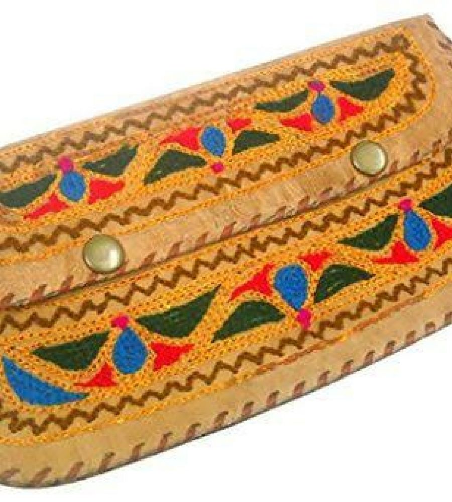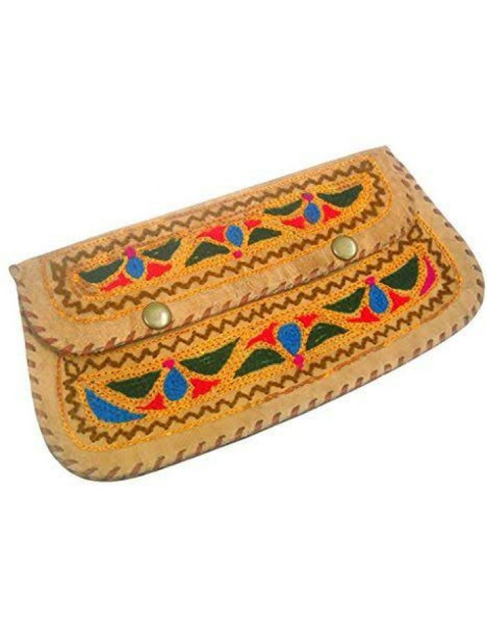 Beautiful handmade camel leather bag with embroidery work clutch bag purse