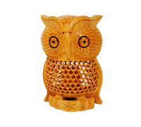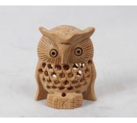Wooden Owl Showpiece 3 inches undercut work jali cutting wooden owl showpiece