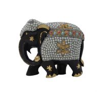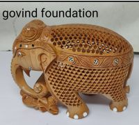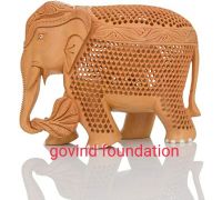Wooden elephant sculpture wooden cut work hand carved elephant 6 inches