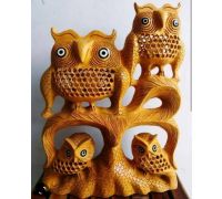 Wooden Owl Family undercut jali Design Wooden Owl Sculpture family