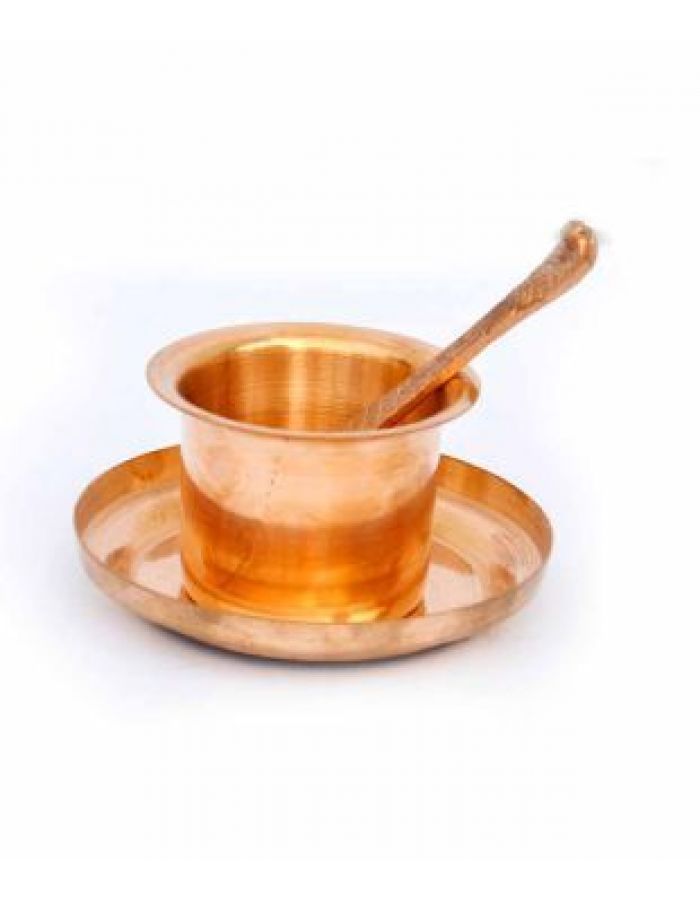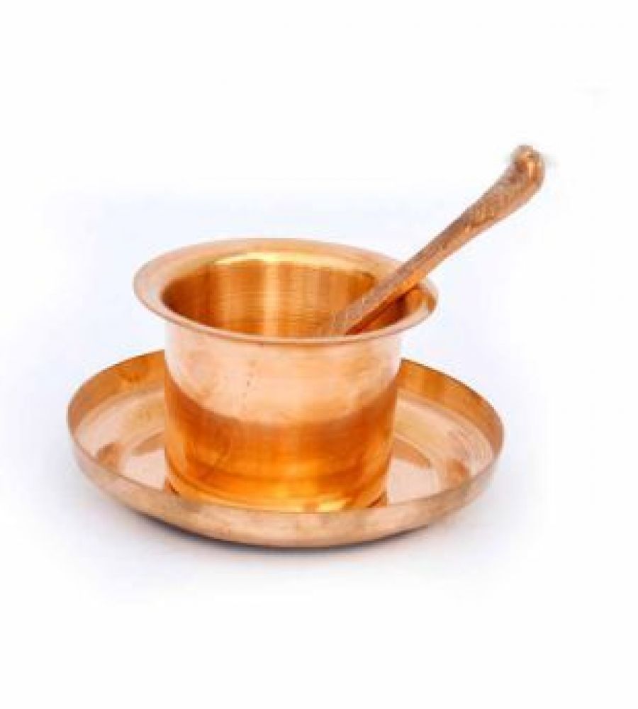 Copper panchpatra set copper pooja plate glass spoon set