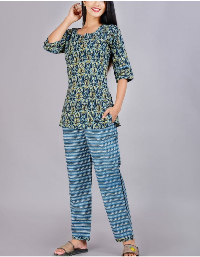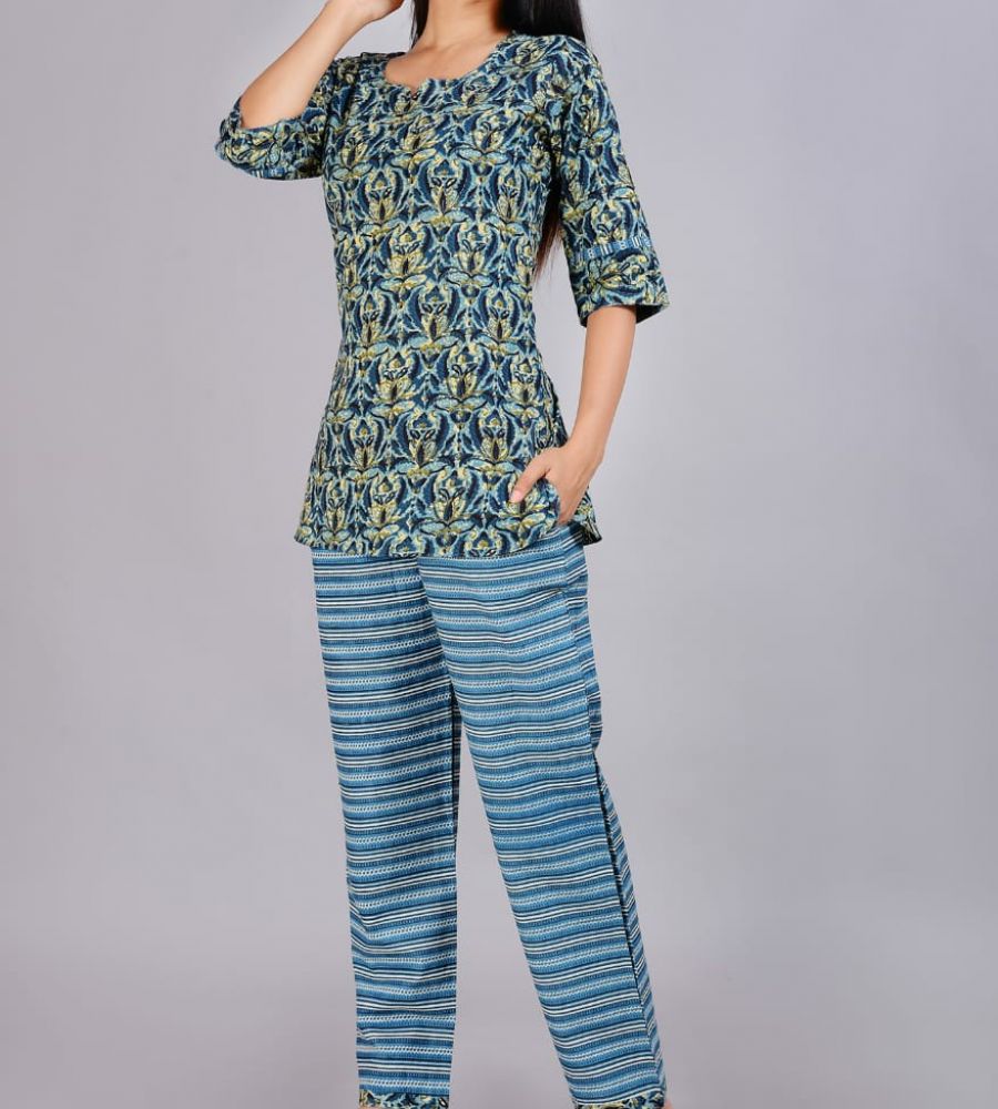 Cotton night suit night dress hand block print code 1