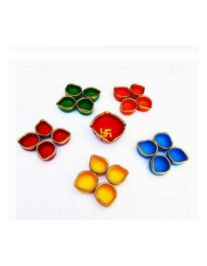 Diwali diya colorful set of 21 -20 small and 1 choumukha diya