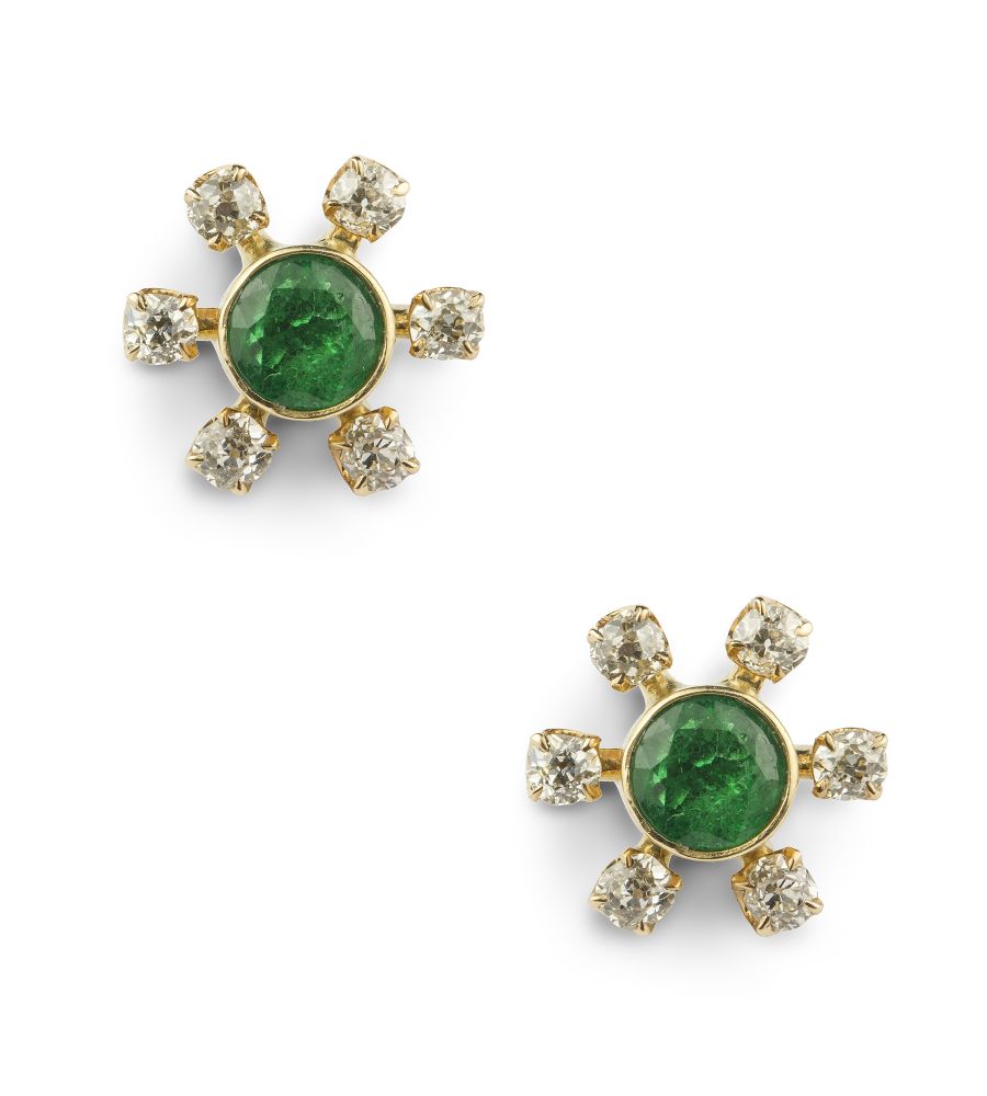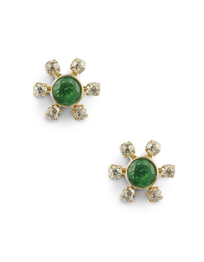 Natural emerald and diamond studs