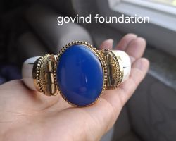 Bone Bracelet Royal Blue Stone Bone Cuff Bangle