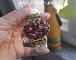 Bone Bracelet Red jasper Stone chips Bone Cuff Bangle