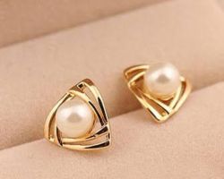 Pearl Gold earrings Gold earrings with pearl Noor triangle design