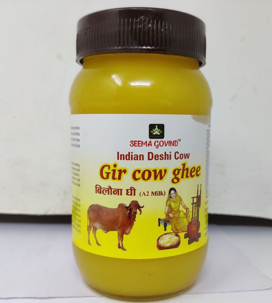 BENEFITS OF GIR COW GHEE -The various vitamins in Gir Ghee, such as A2, E, D, and Omega 3, help to boost the body’s immunity to external pathogens and build overall immunity stamina. Vitamin D present in Desi Ghee is said to promote bone health and even physical development. Digestive Improvement The butyric acid in Gir Ghee assists in digestion and anti-inflammatory processes in the body. , Gir Ghee is said to be the easiest of dairy fats to be digested by the human body. Reducing Inflammation . Dermatological Enhancement Gir Ghee is said to effectively treat burns, soften the skin, and promote skin smoothness. It is also claimed to slow the ageing process. The benefits of Desi cow Ghee are plentiful. We suggest adding a teaspoon to a tablespoon serving of Gir Ghee to your next meal to begin reaping the benefits that this wonderful vedic cow ghee