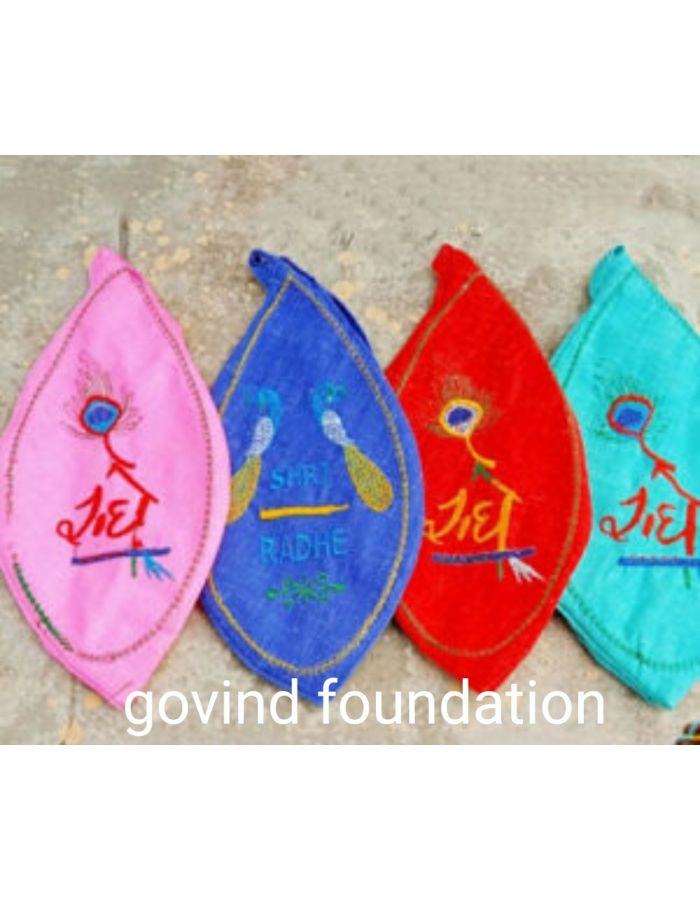 Beautiful super fine quality mala jap bag with embroidery work Shri Radha Naam