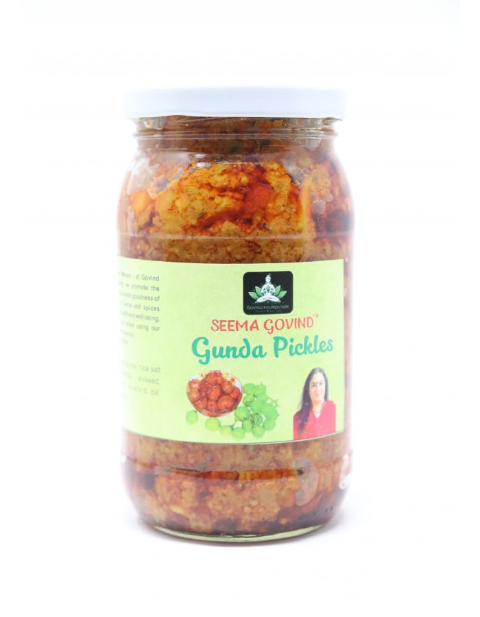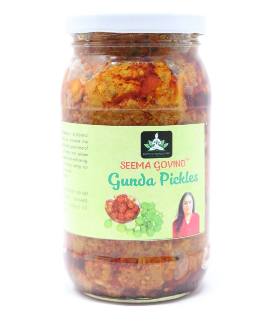 Ingredients- green gunde, mustard oil, mustard seeds, rock salt, turmeric, chilli, cumin, fenugreek, fennel, asafoeteda