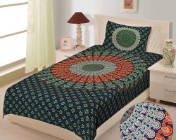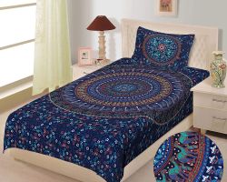 Bedsheet single bed cotton with pillow cover barmeri print blue