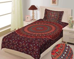 Bedsheet single bed cotton bedsheet with pillow cover barmeri print red