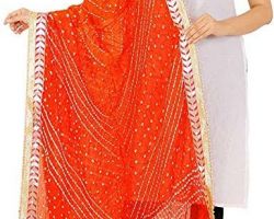 Bandhej dupatta gota patti border red sinduri bandhej dupatta with gota patti border