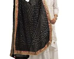 Bandhej dupatta gota patti border black bandhni dupatta with border