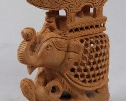 Elephant wooden Ambabari Handcarved Elephant Sculpture Trunk down