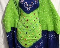 Bandhej suit material bandhani suit cotton 3 piece parrot Green and blue