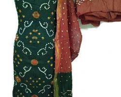 Bandhani suit material bandhej suit 3 piece dark green