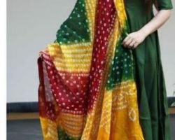 Bandhani dupatta jaipuri bandhej dupatta green red yellowmix bandhani