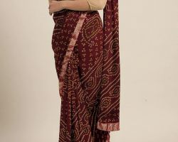 Pure chiffon bandhej saari bandhani saree maroon padama