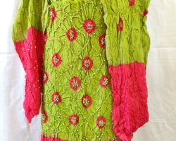 Bandhej suit material bandhani suit 3 piece parrot green and red