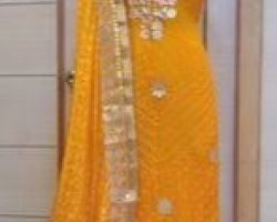 Bandhej suit gotta patti work yellow