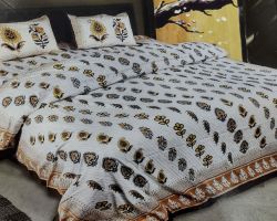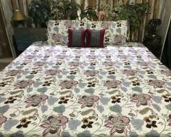 Bedsheet Cotton double bed with pillow cover white floral code 3