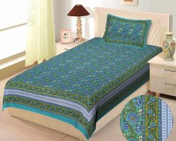 Bedsheet single bed cotton bedsheet with pillow cover code 3 green