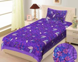 Bedsheet single bed cotton printed bedsheet with pillow cover purple code 1