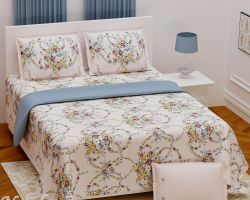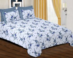 Bedsheet cotton double bed floral Padmini white blue 108×100 inches