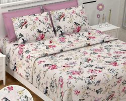 Bedsheet cotton double bed printed king size 108×108 inches Nandini bird