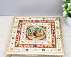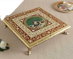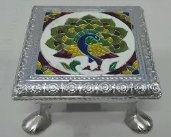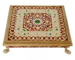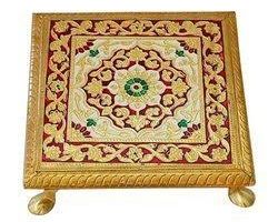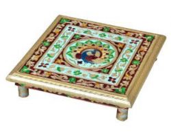 Choki Wood meenakari 10×10 inches chowki golden meenakari