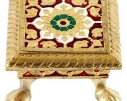 Choki Wood meenakari golden chowki pooja chowki 5x5 inches