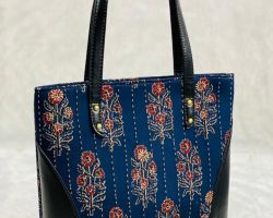 Bag shoulder cum hand bag blue print 11×10 inches