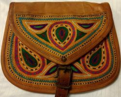 Camel leather bag with hand embroidery fashion